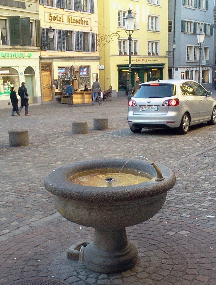 It is in the Hirshenplatz, in the heart of the Niederdorf, the bohemian neighborhood of Zurich.