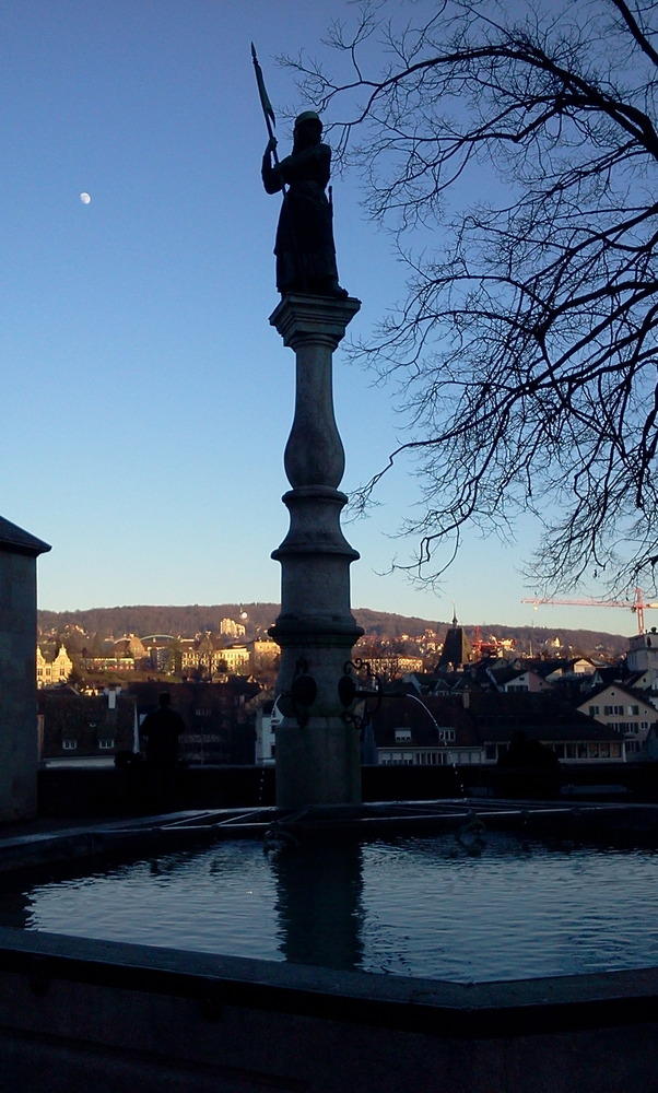 It is at the Lindenhof, a favorite spot of Zürchers and tourists. It commemorates the brave woman of Zurich who defended the town against the invasion of Albert I of Germany.
