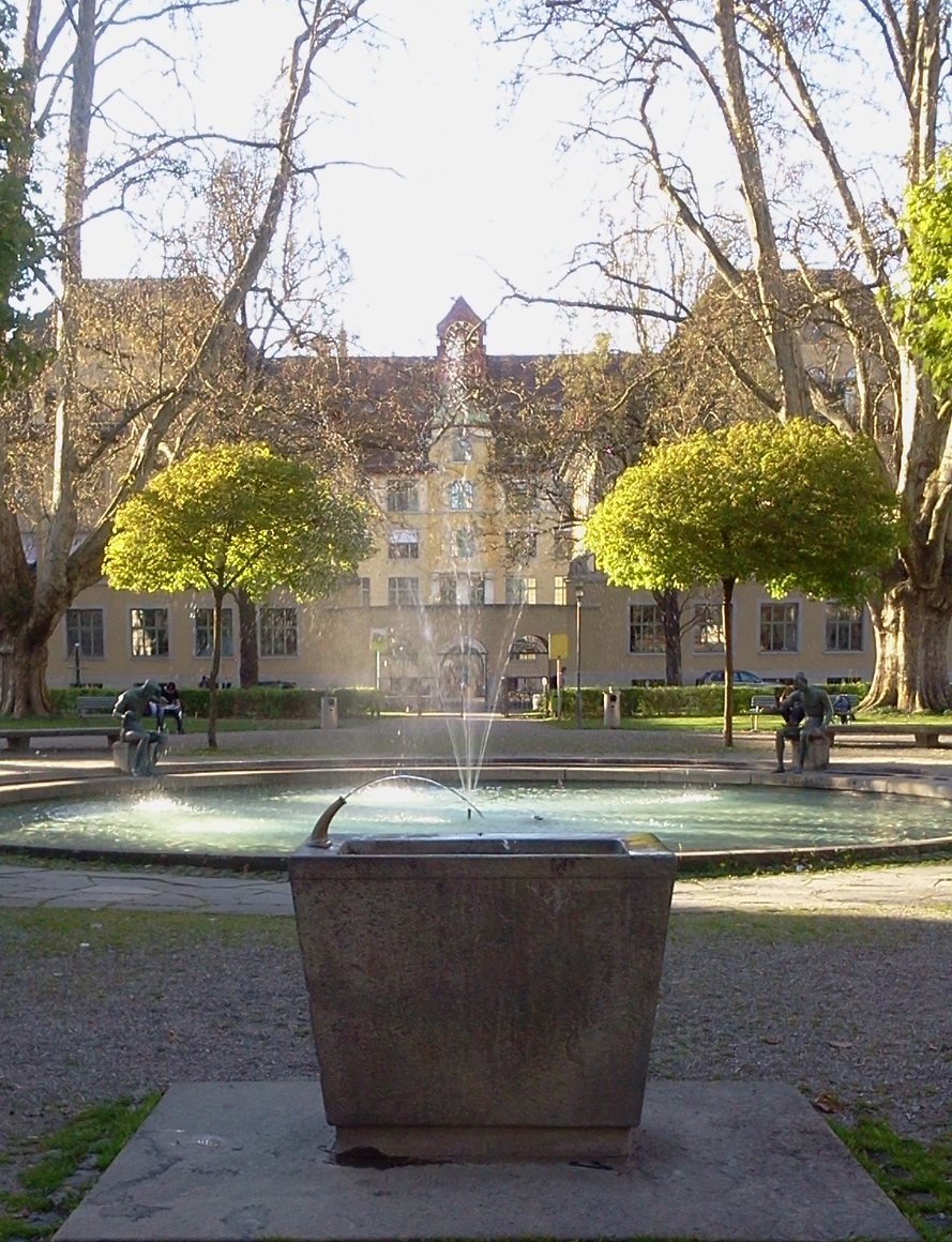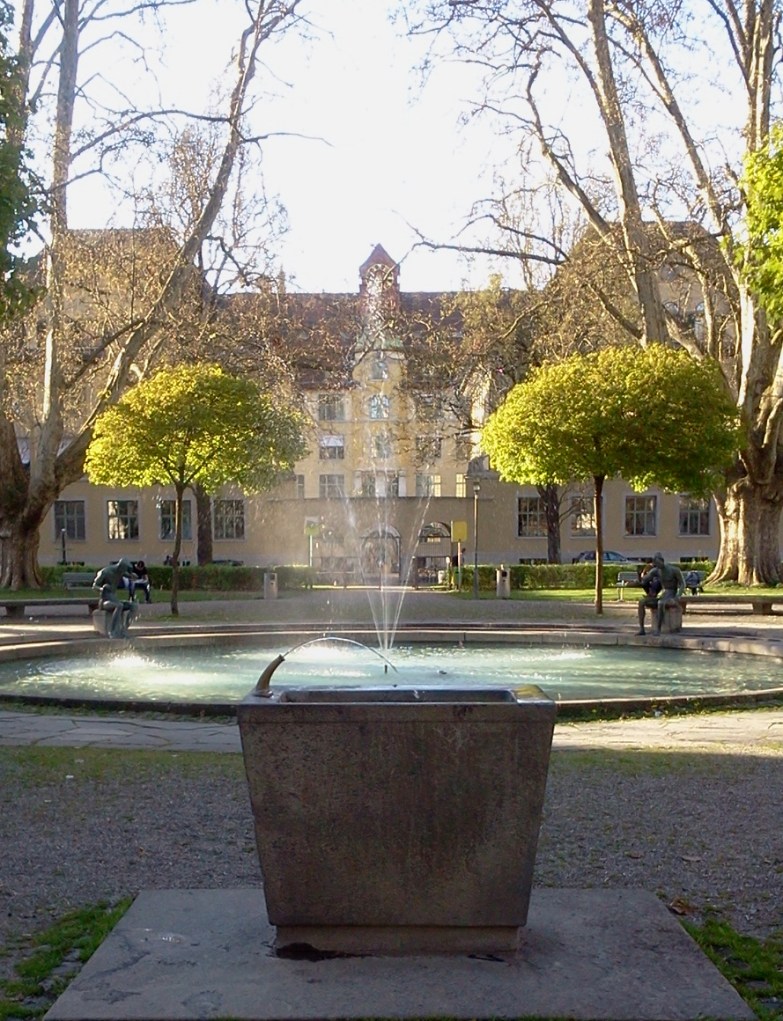 The small one in the garden of the Museum für Gestaltung Zürich [Museum of Design Zurich ], in the Ausstellungsstrasse. Its big sister, the central piece of the Museum’s garden deserved a post of its own a few days ago. This one for sure has a better design for drinking and filling bottles.