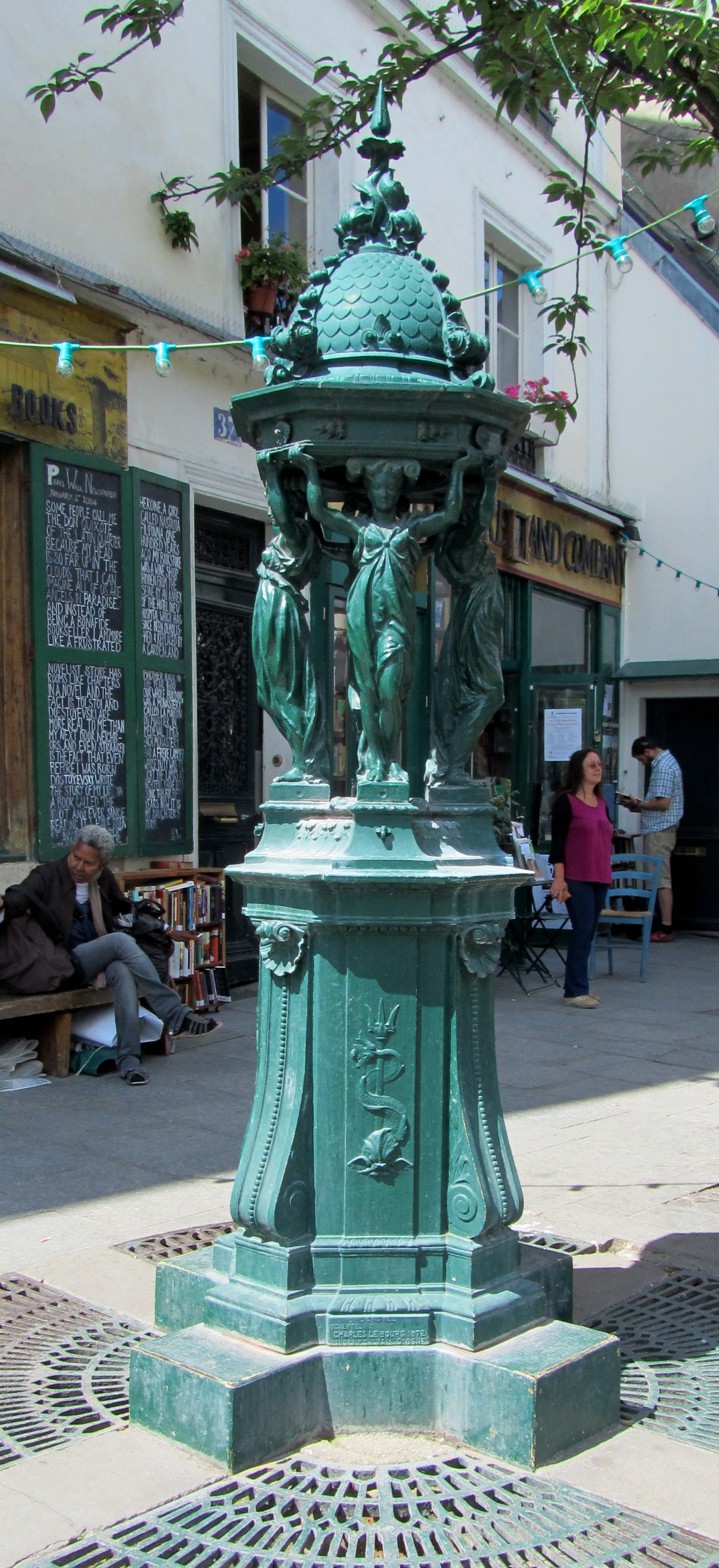 There is the one in Banhnofstrasse, between Globus and the Apple Store. And, there is this one in Paris, in 37 Rue de la Bûcherie, right in front of Shakespeare and Company. Actually, there are lots of these deep green cast-iron fountains all over Paris. They were designed in 1875 by Charles-Auguste Lebourg, and named after its sponsor, the English art collector Richard Wallace. The fountains were one of Wallace’s many contributions to Paris heritage, and were created to offer a reliable source of clean drinking water to the Parisians.