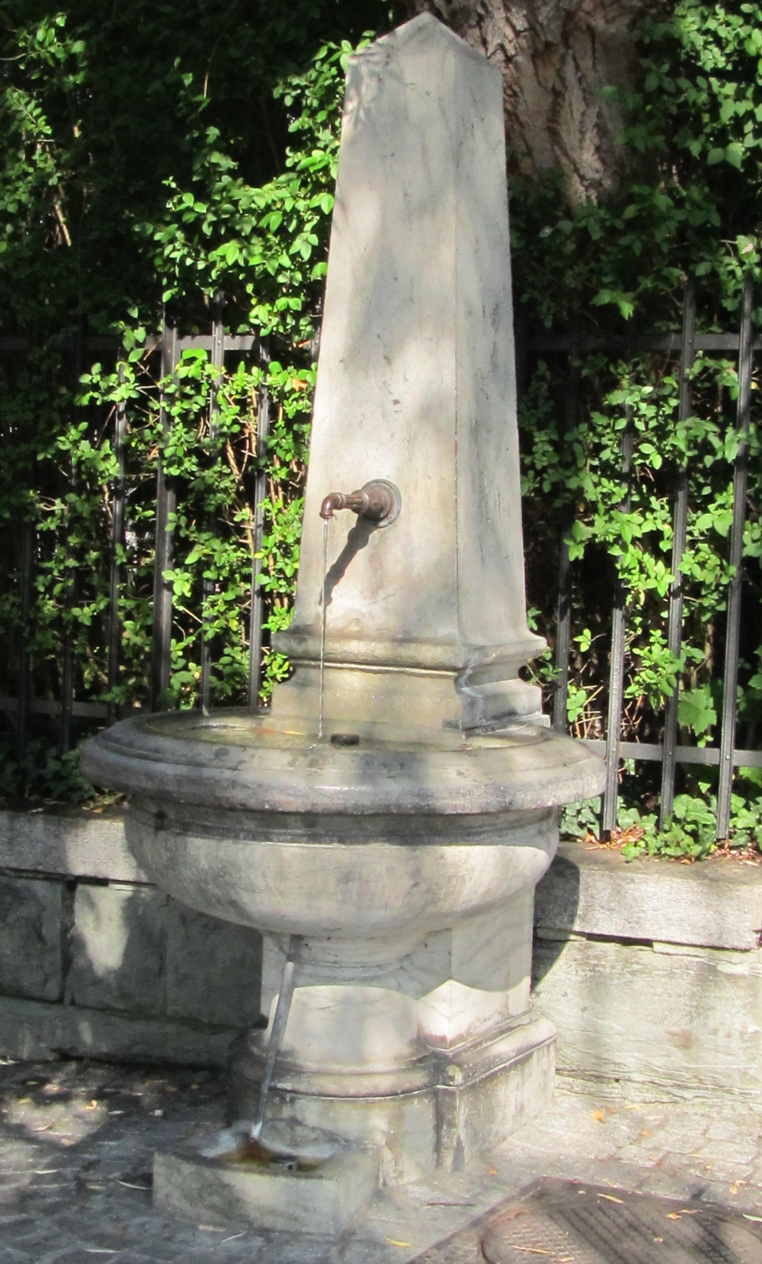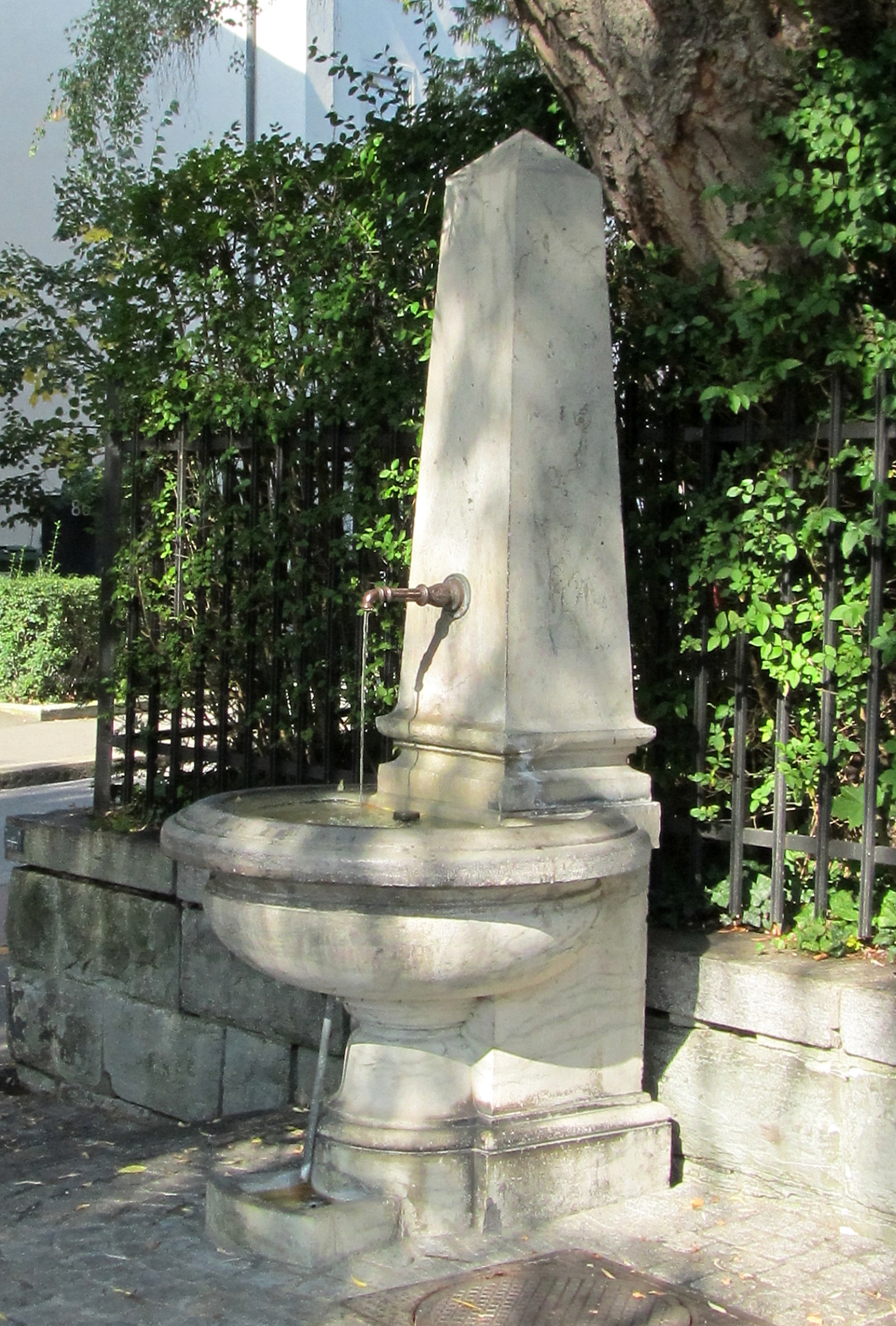 The one at the end of Mühlebachstrasse. A standard obelisk fountain in a normal neighborhood, with normal neighbors who live a normal live and have normal kids.Happy is the fountain which has not history…