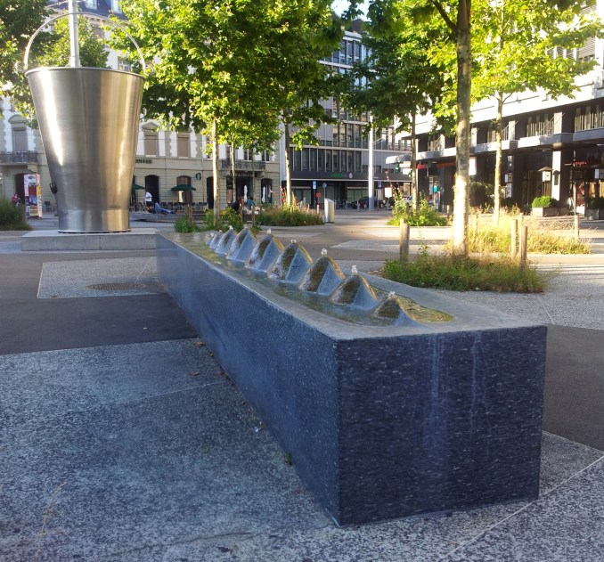 The one in Tessinerplatz, right in front of Enge train station. It is the work of local artist Horst Bohnet, and made of a special type of granite. It symbolizes the Alpine crest as seen from Lake Zurich.