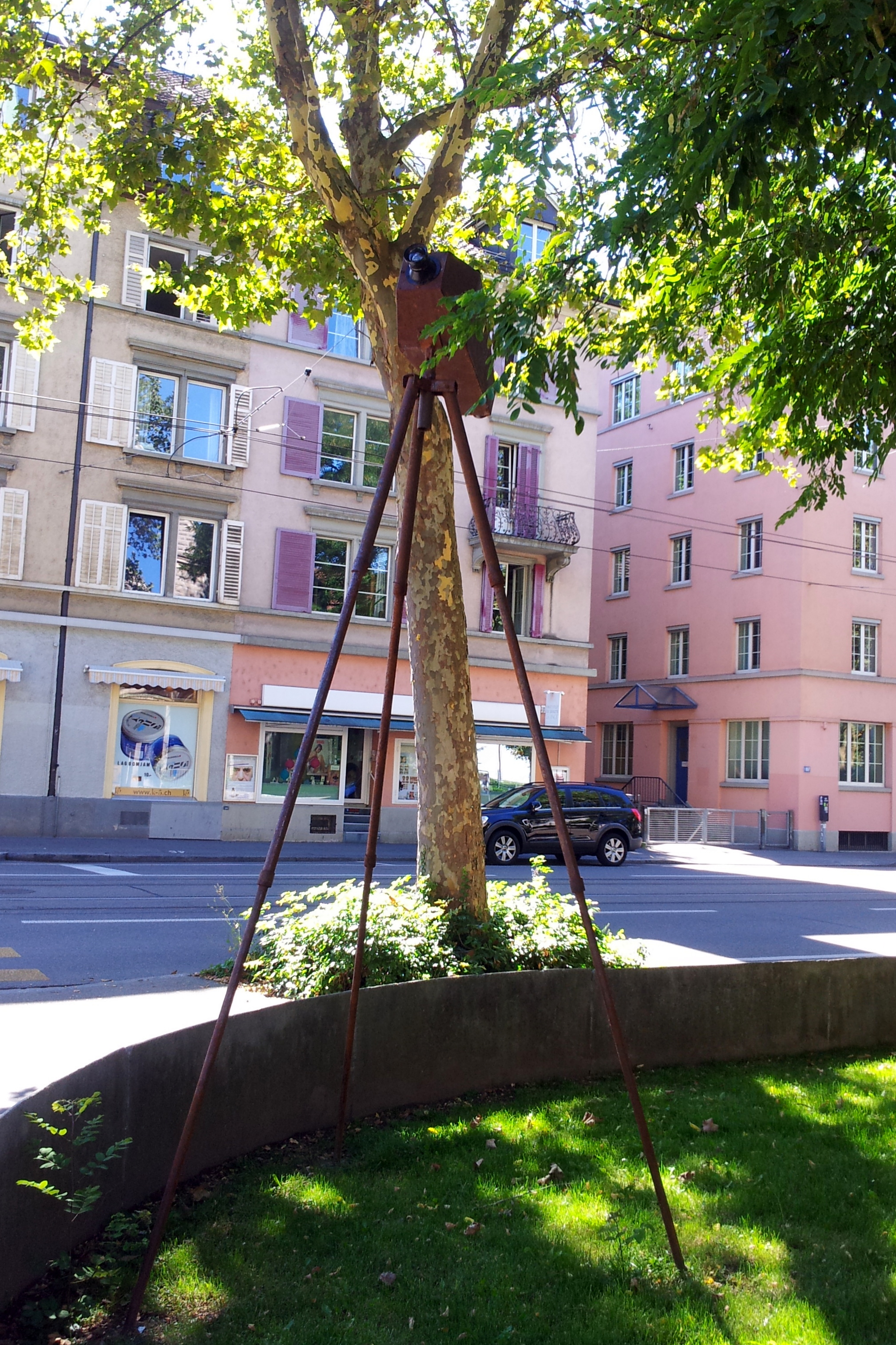 There were several Taiyo Onorato & Nico Krebs’ Kamera (2012) around the city. This was in the garden of the Johanneskirche in the Limmatstrasse.